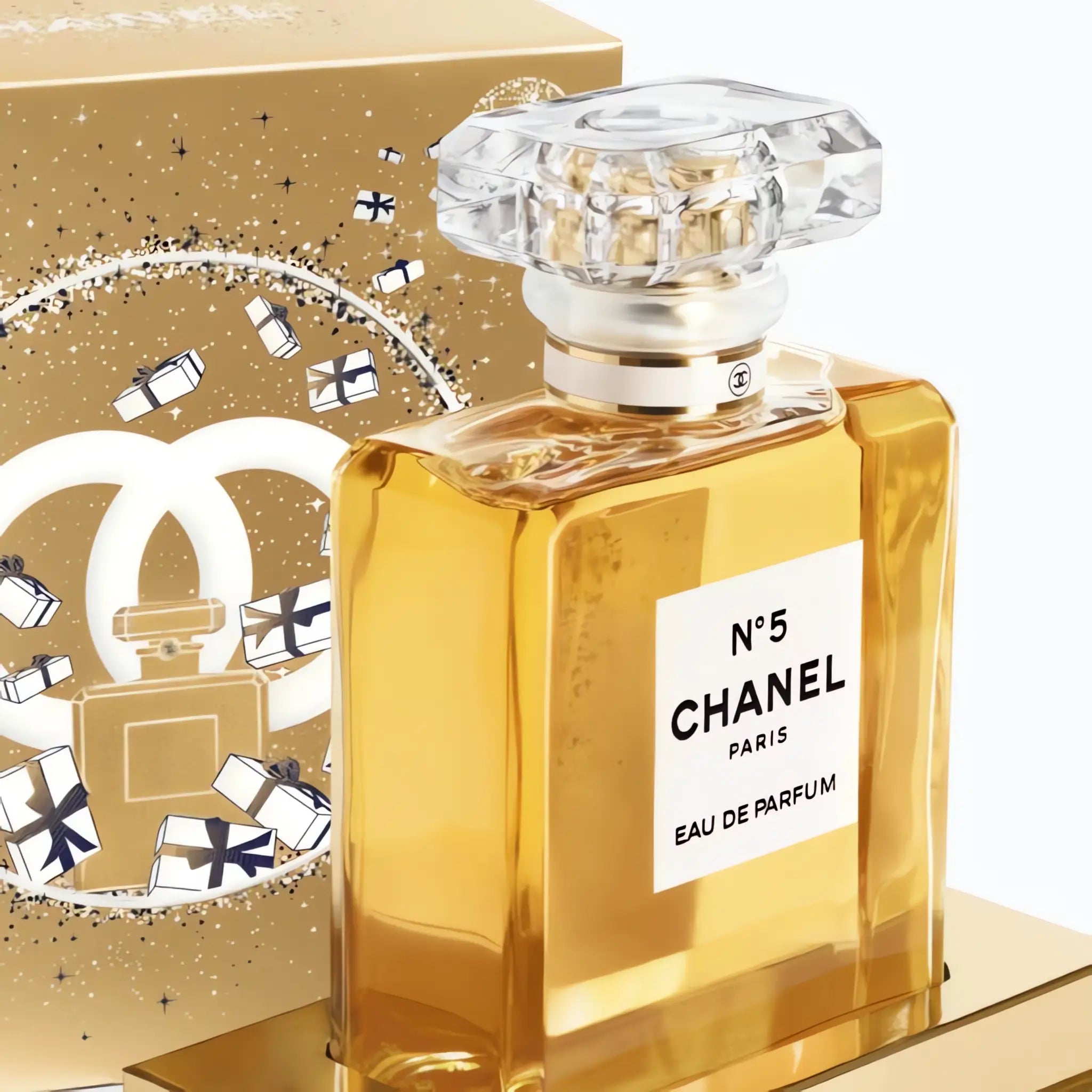 - Exclusive Holiday Edition: The iconic Chanel N°5 presented in a radiant gold Christmas collector’s box.