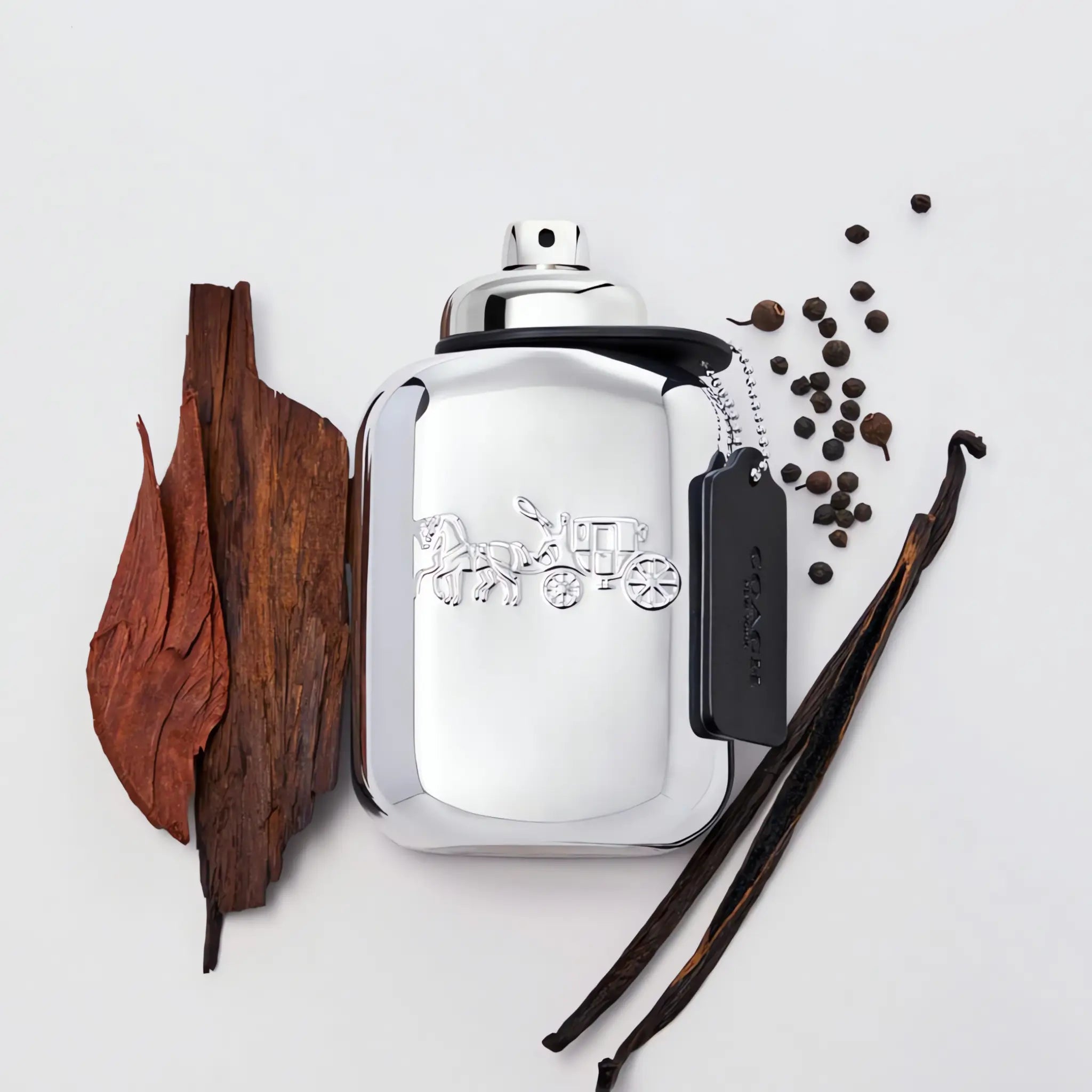 - Luxury Craftsmanship: Presented in a polished silver bottle inspired by Coach’s iconic leather goods.