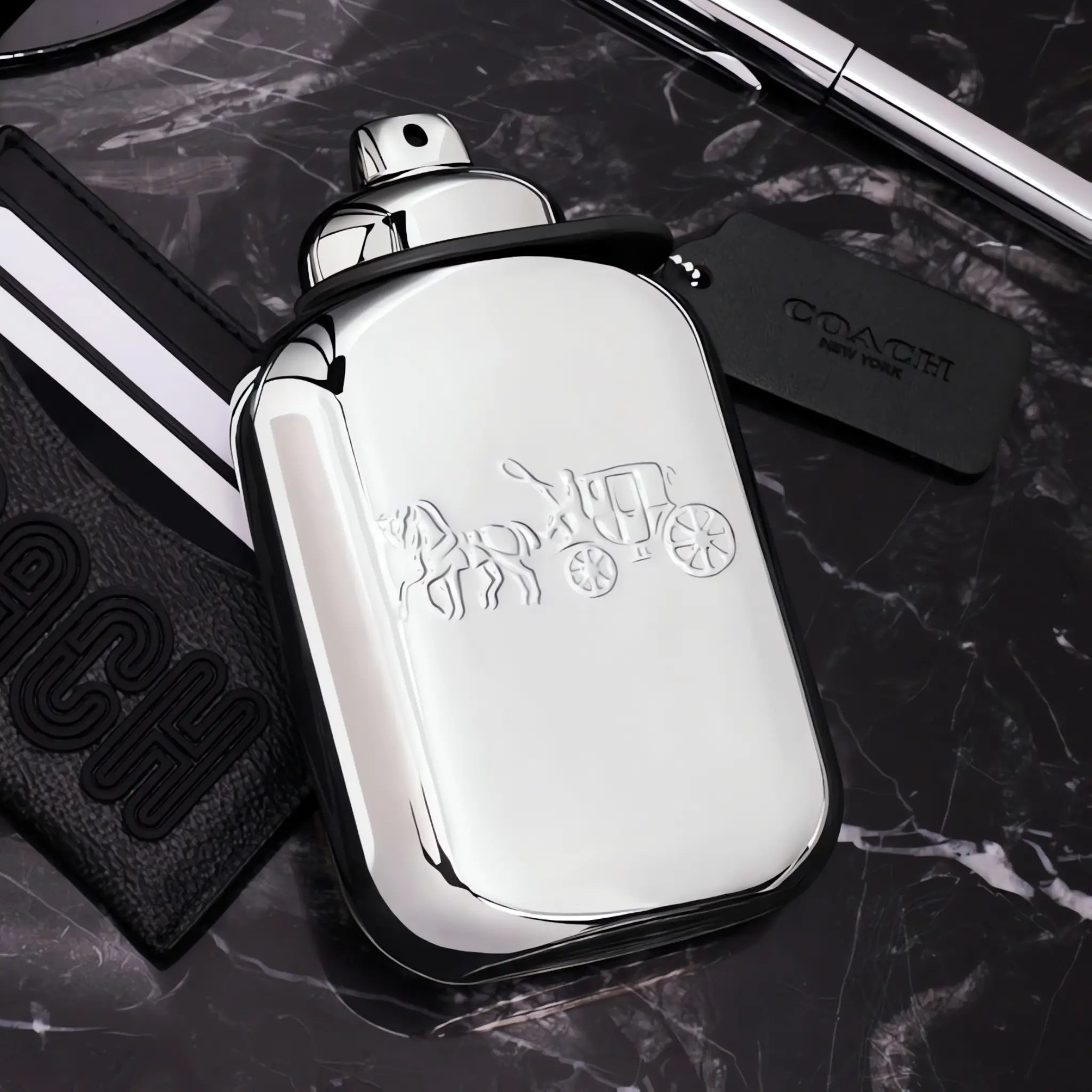Encased in a sleek metallic bottle engraved with the iconic Coach horse and carriage logo, this Eau de Parfum reflects the brand’s heritage of craftsmanship and modern luxury.