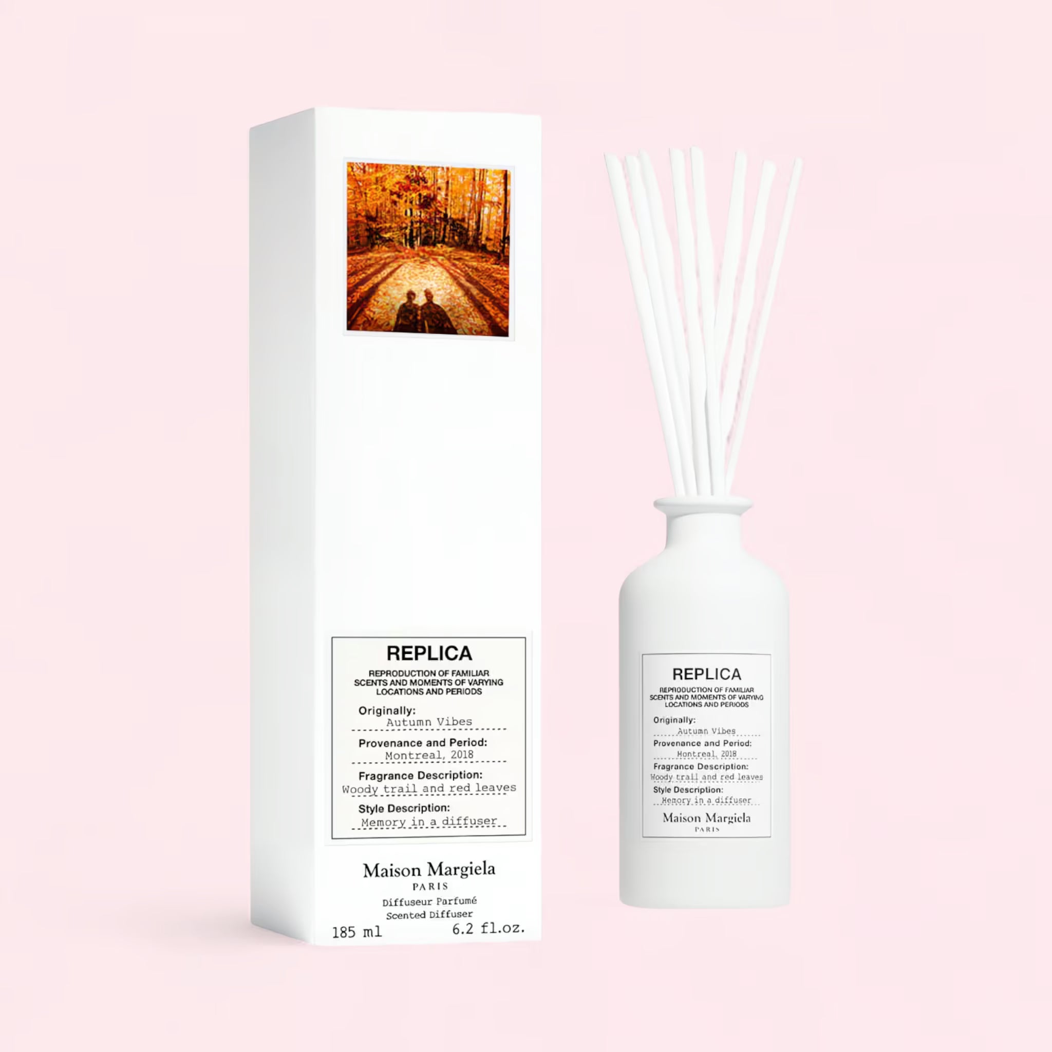 Bring the spirit of autumn into your home with Maison Margiela Replica Autumn Vibes Scented Diffuser 185ml, a luxurious home fragrance that captures the crisp air, earthy woods, and golden light of the season. Inspired by the Replica collection’s art of recreating cherished memories through scent, this diffuser evokes the comforting feeling of walking through a forest carpeted with fallen leaves — where the air is cool, the woods are warm, and nature hums softly in the background.