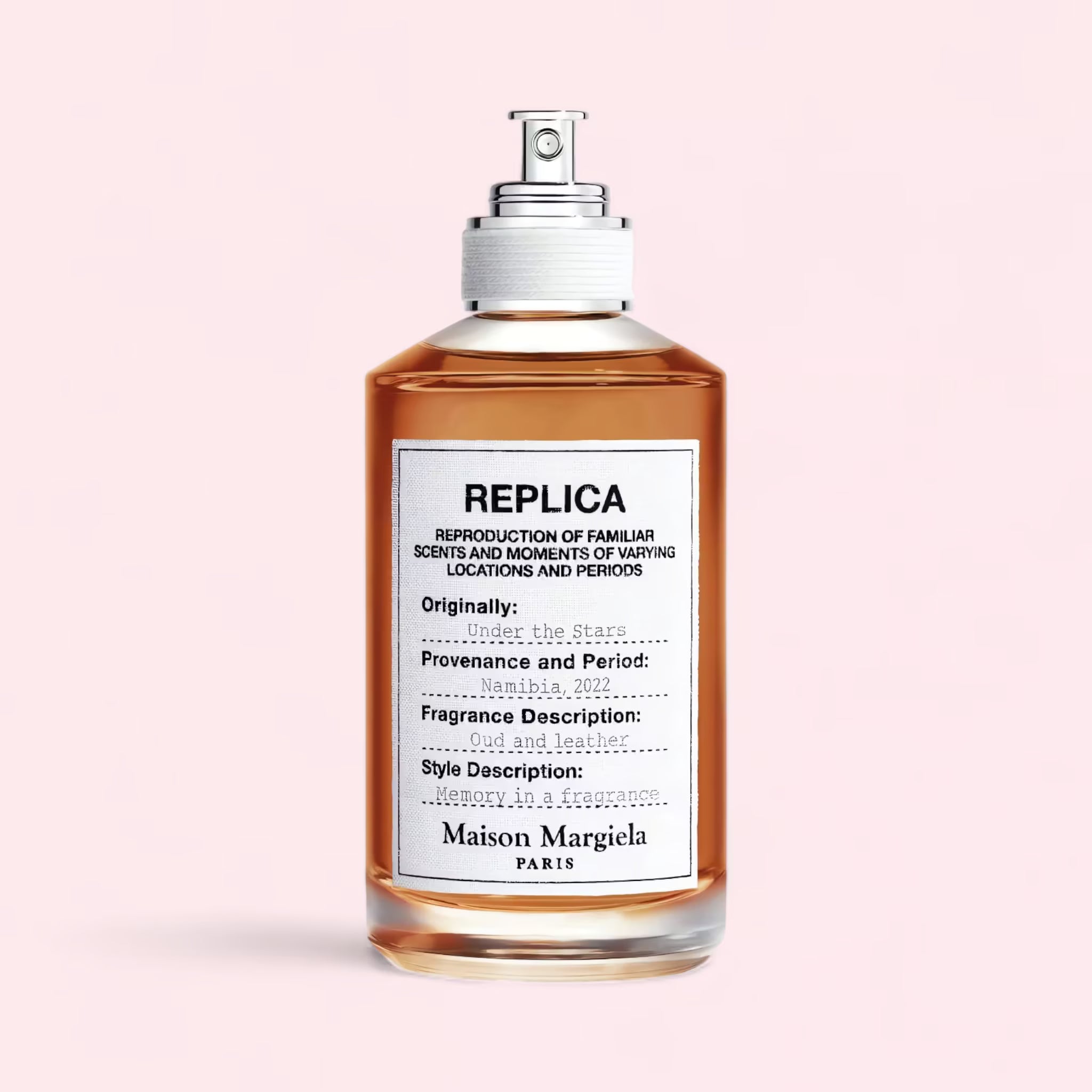 Maison Margiela Replica Under The Stars Eau de Toilette 100ml is more than a fragrance — it’s an experience of warmth, stillness, and wonder. Its smoky leather heart and resinous oud base evoke the feeling of gazing at the night sky, surrounded by the quiet hum of nature.
