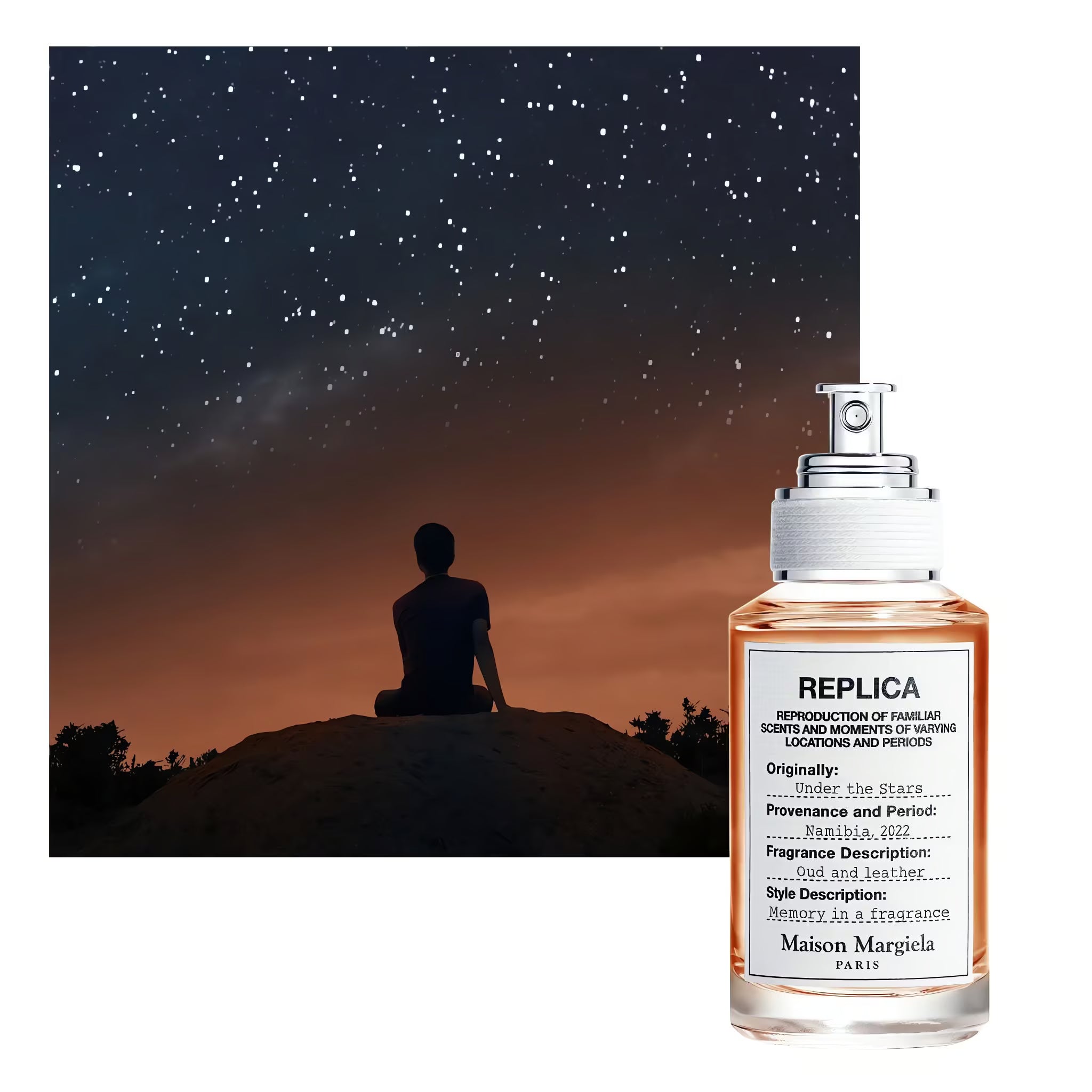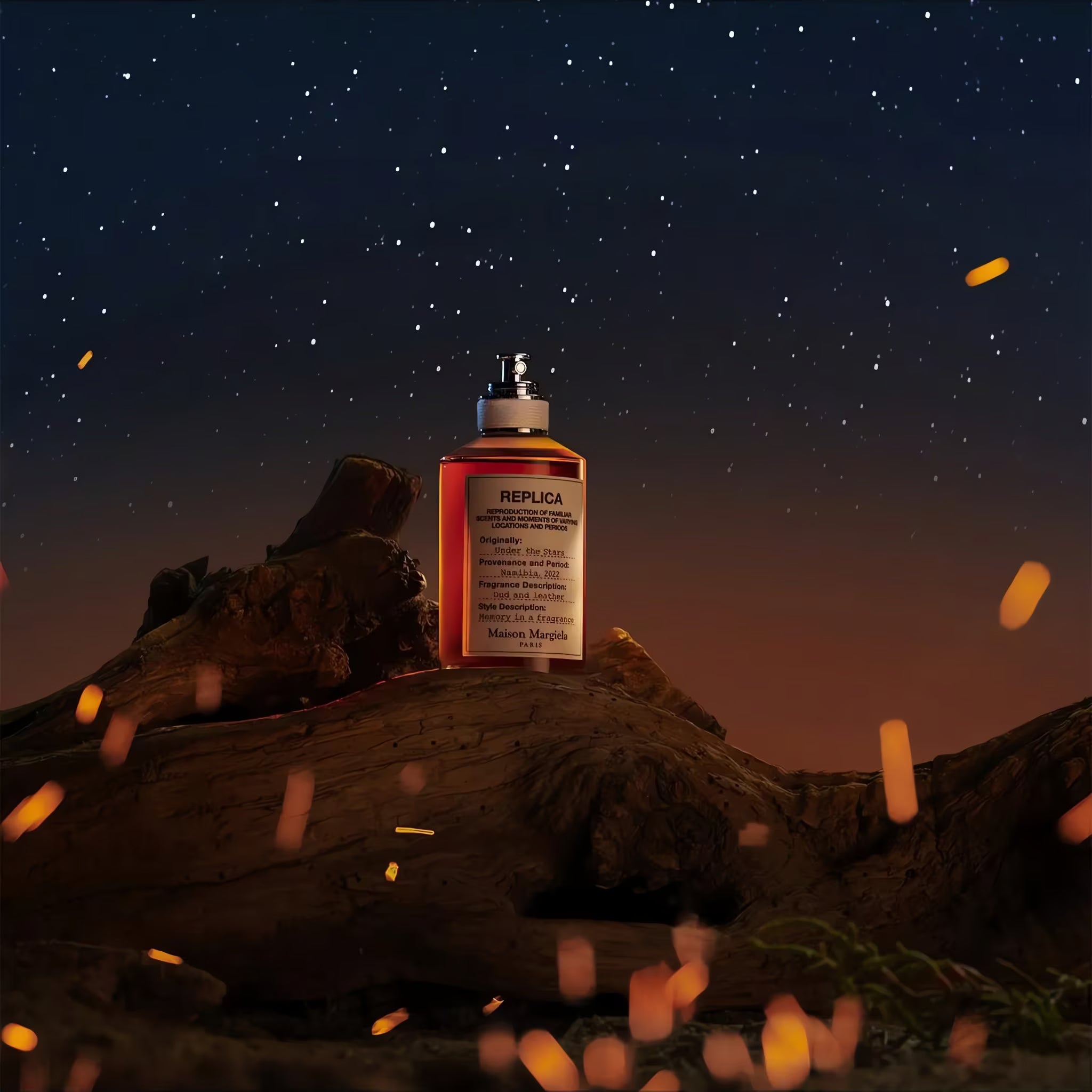 Discover the captivating allure of Maison Margiela Replica Under The Stars Eau de Toilette 100ml, a fragrance that evokes the quiet beauty of a starlit night. Part of the Replica collection, this scent captures the essence of sleeping beneath the open sky — the crackle of a campfire, the scent of leather, and the comforting warmth of the earth after dusk.