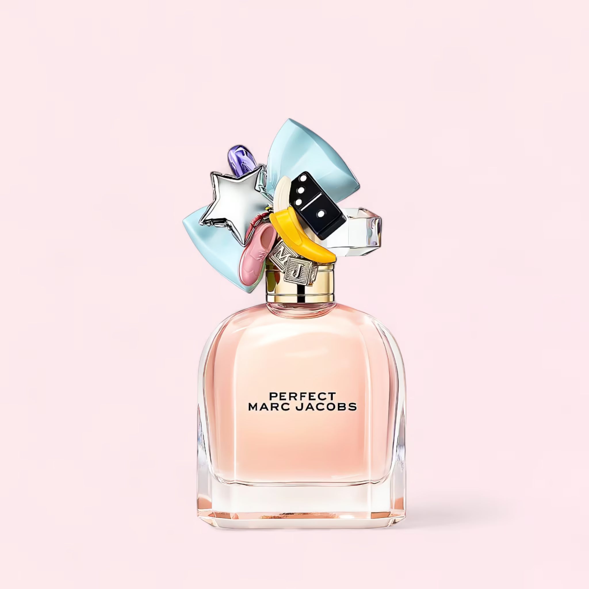Encased in the iconic Marc Jacobs bottle adorned with whimsical charms — a banana, a bow, a domino, and a star — this perfume is a statement piece that embodies creativity, individuality, and joy.