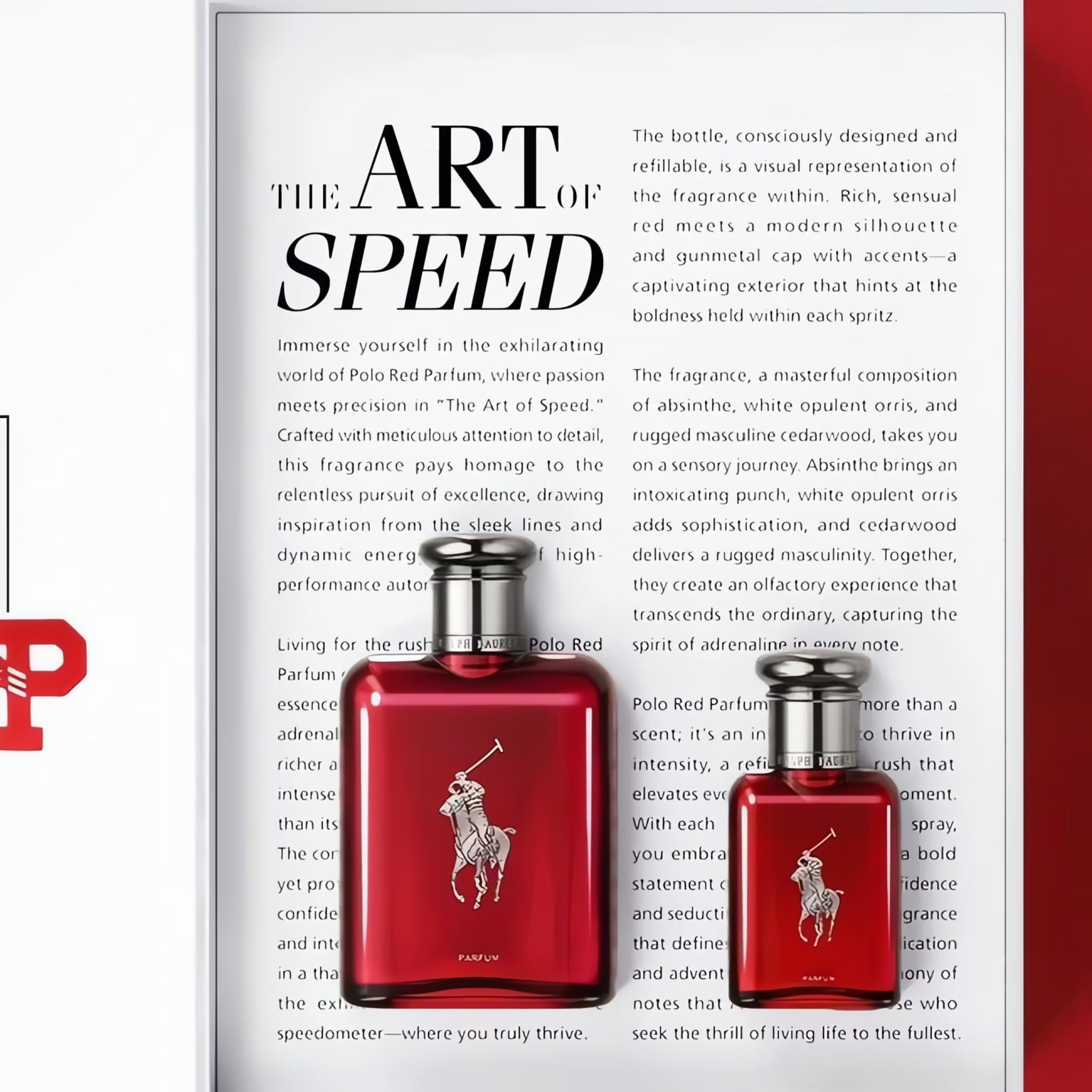 A true reflection of Ralph Lauren’s legacy, Polo Red Parfum celebrates the thrill of performance and the art of living boldly — where every moment is charged with energy and every detail speaks of luxury.