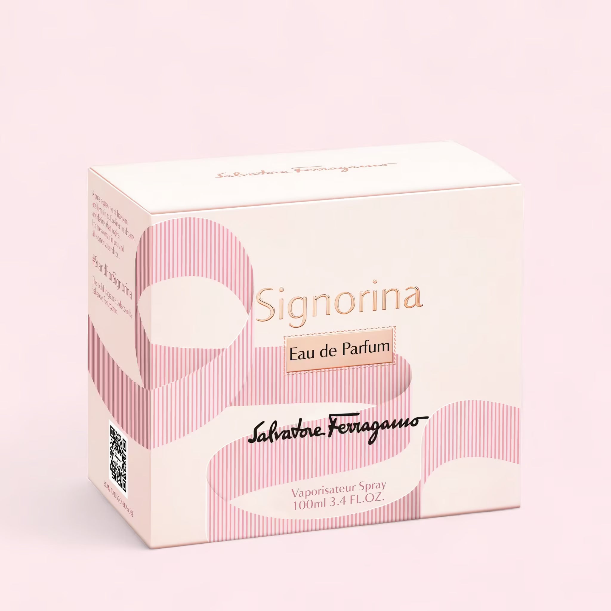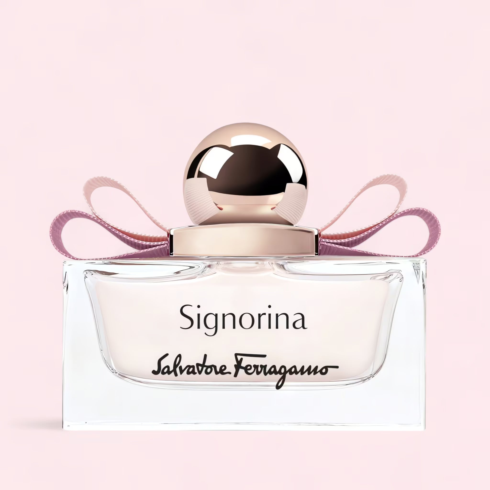 Encased in a signature blush-pink bottle adorned with Ferragamo’s iconic grosgrain Vara bow, Signorina Eau de Parfum is a symbol of Italian sophistication — timeless, feminine and effortlessly luxurious.