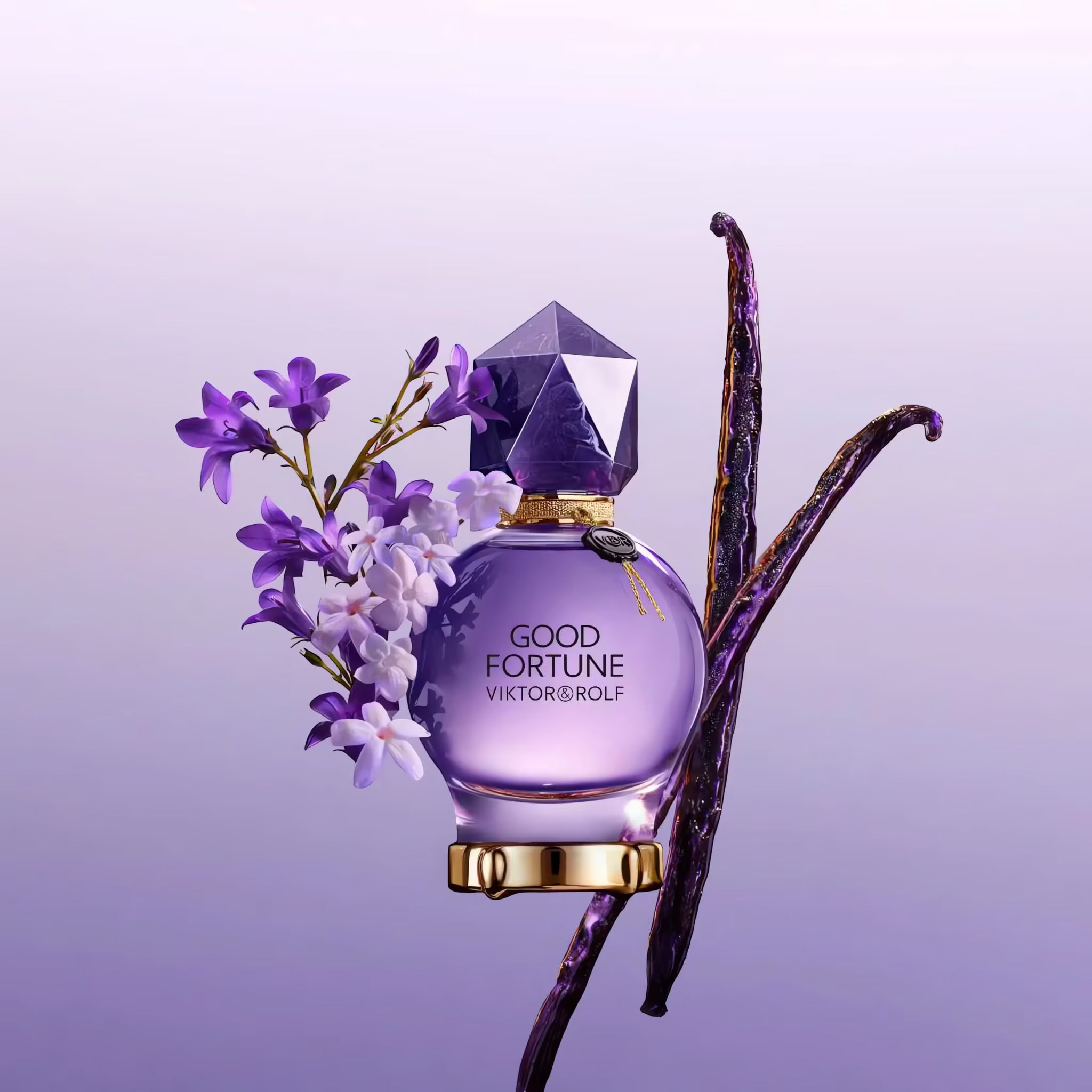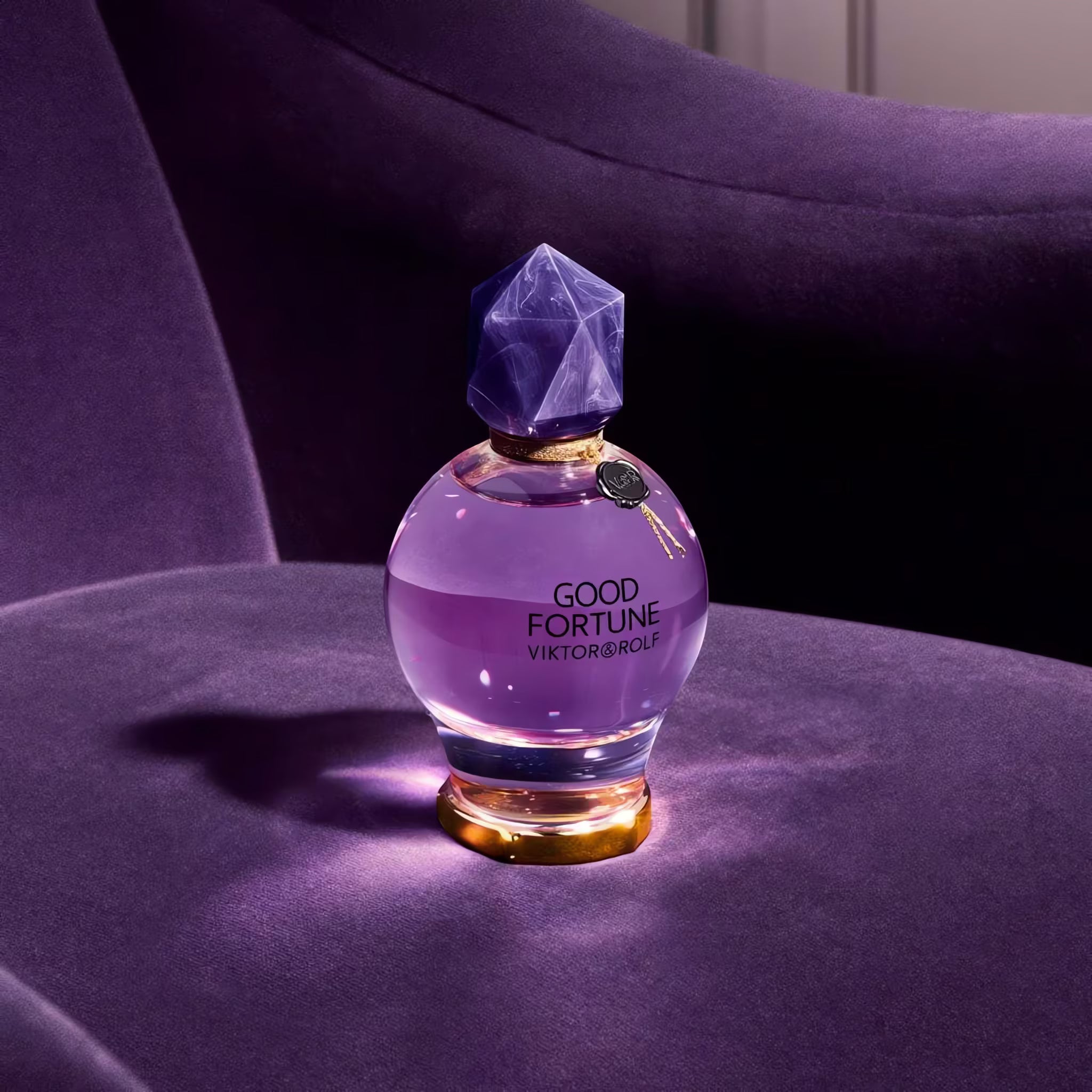 Encased in a crystal-inspired bottle crowned with a purple amethyst cap, Viktor & Rolf Good Fortune is a symbol of transformation and empowerment — a fragrance that invites every woman to manifest her destiny.